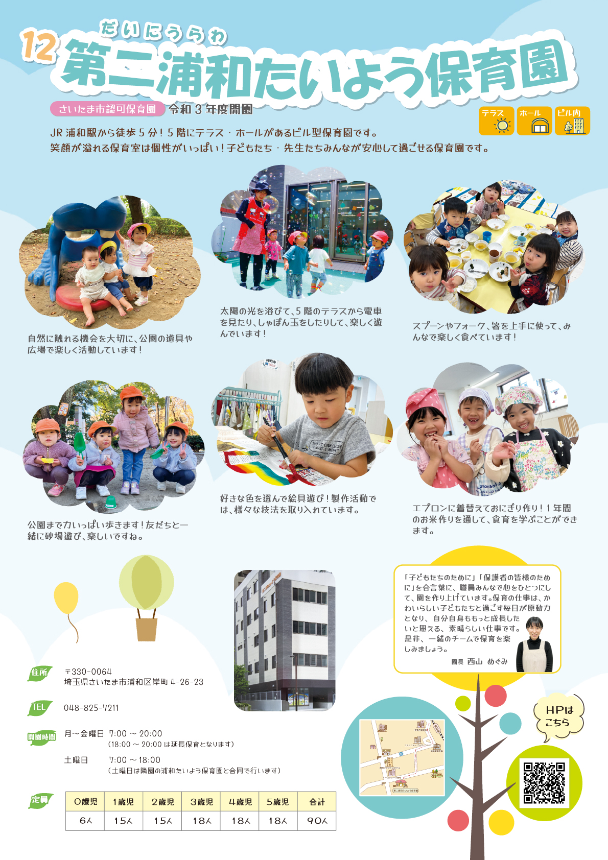 0歳児 6人 1歳児 15人 2歳児 15人 3歳児 18人 4歳児 18人 5歳児 18人 計 90人