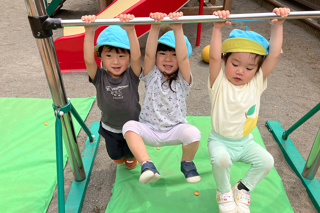給食は、入園児童の心身ともに健全な発達と健康の保持・増進に必要な栄養素を供するとともに、給食を通して望ましい食習慣を身につけ、体と食物との関係について関心を持つことを目標としています。自園で調理しています。
