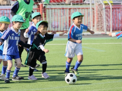 透き通るような青空のもとピッチの上を縦横無尽に駆け回りサッカーを楽しみました!