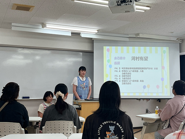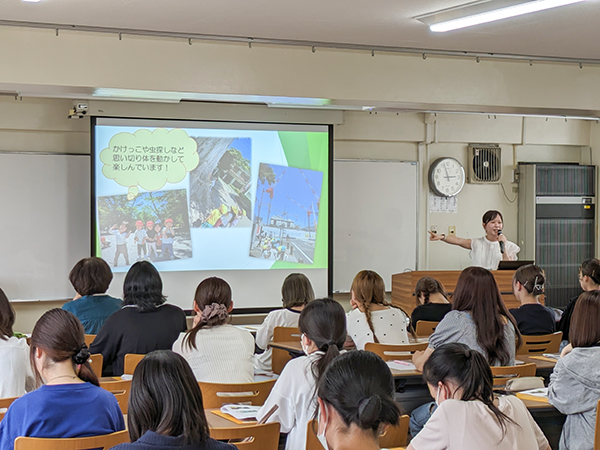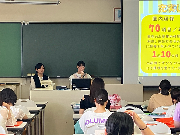 卒業生も一緒に参加し、同じ学校ならではの話や、保育現場の話もより身近に感じられるようお伝えしました。