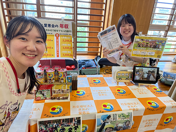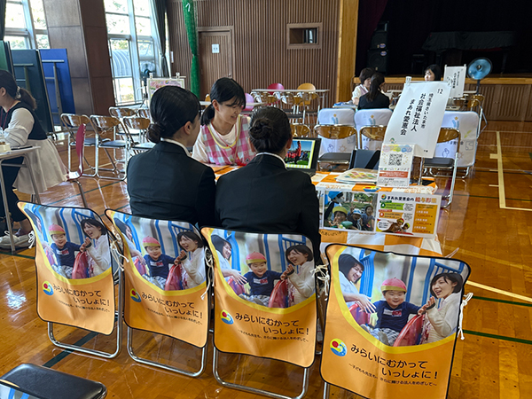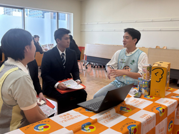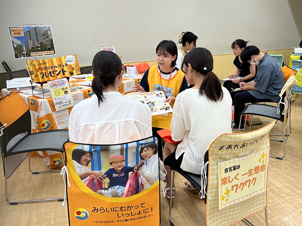 日本児童教育専門学校にて学内フェアに参加させていただきました。卒業生も一緒に参加し、保育現場での働き方や法人についてお話しさせていただきました。