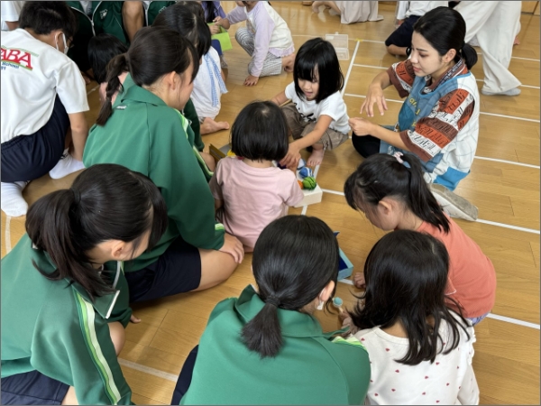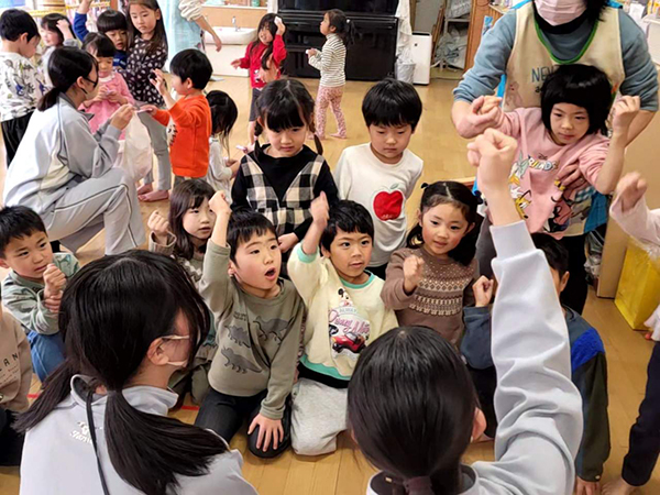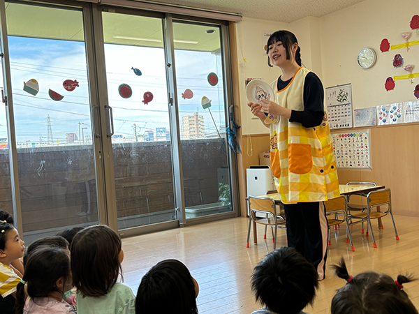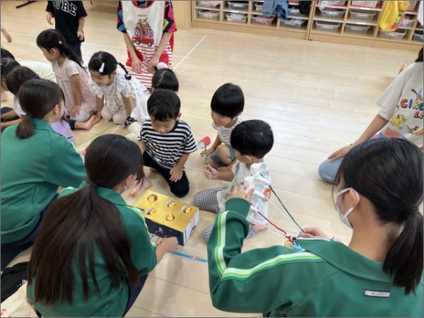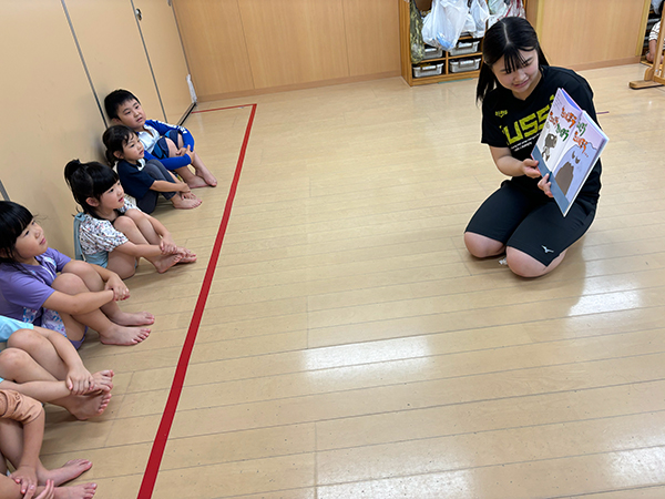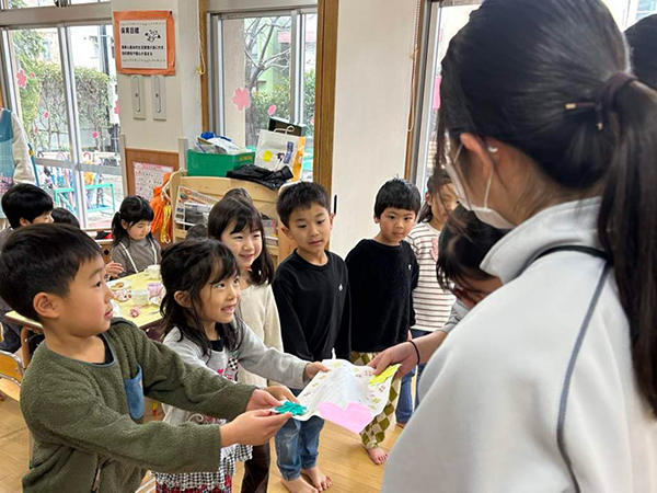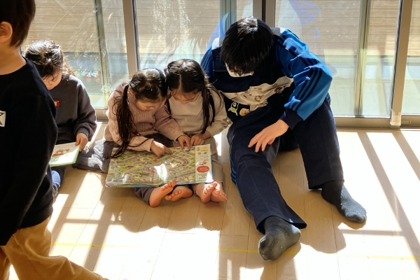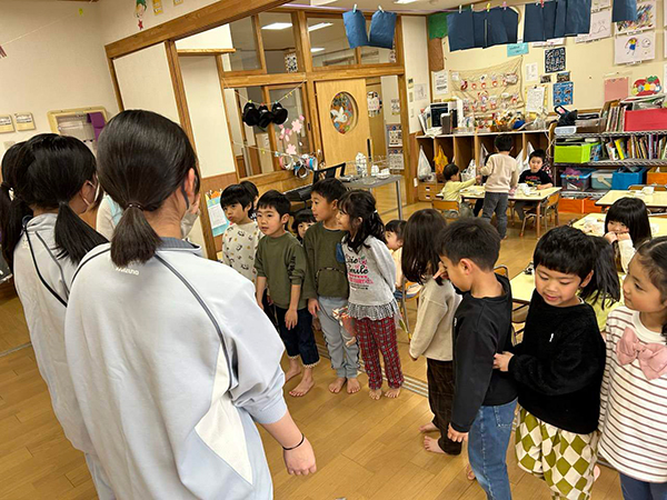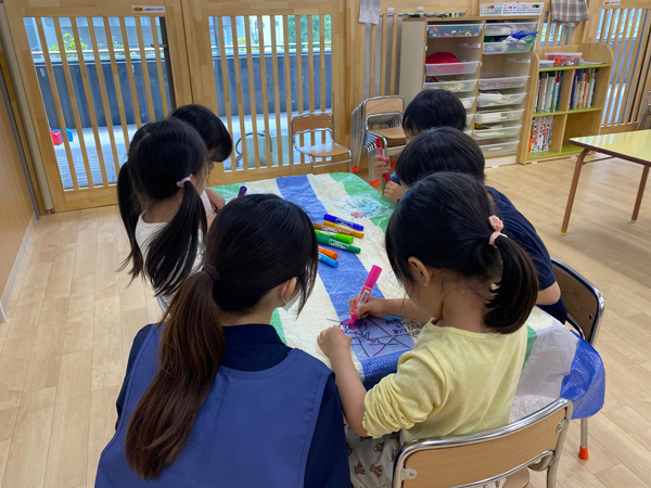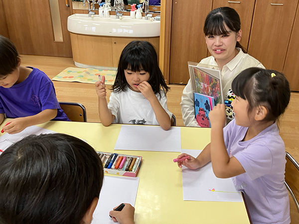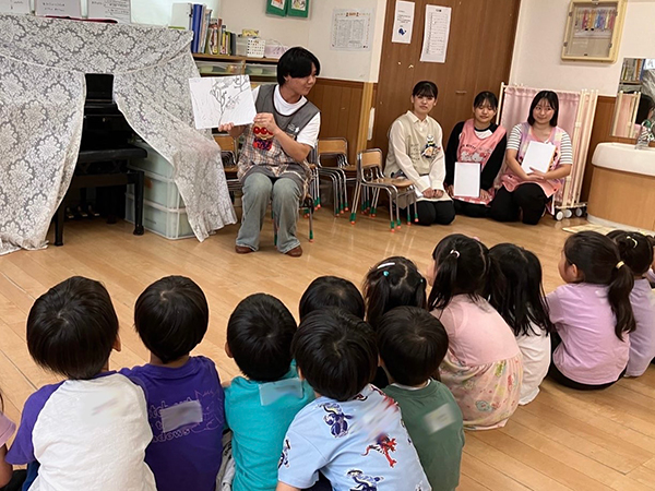東浦和たいよう保育園にて、川口短期大学の学生が作成した絵本を基に、子どもたちと絵を描き交流しました。絵本を通して、学生と子どもたちの交流が深まる機会となりました。