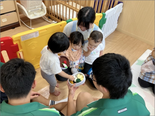 常盤たいよう保育園、元町たいよう保育園、大宮たいよう保育園にインターンシップ授業を行いました。子どもたちとの触れ合いを通して保育の仕事を知っていただく機会となりました。