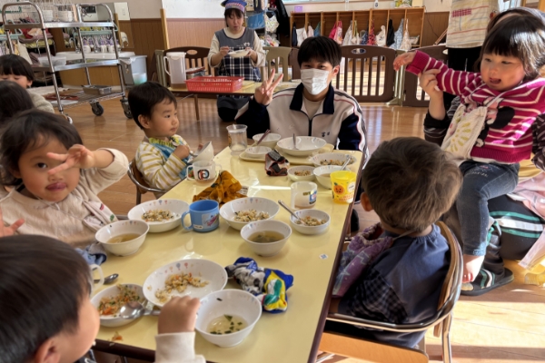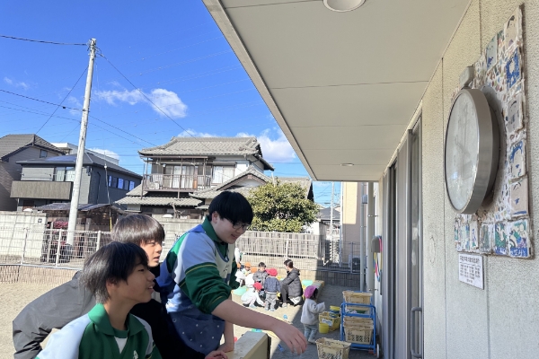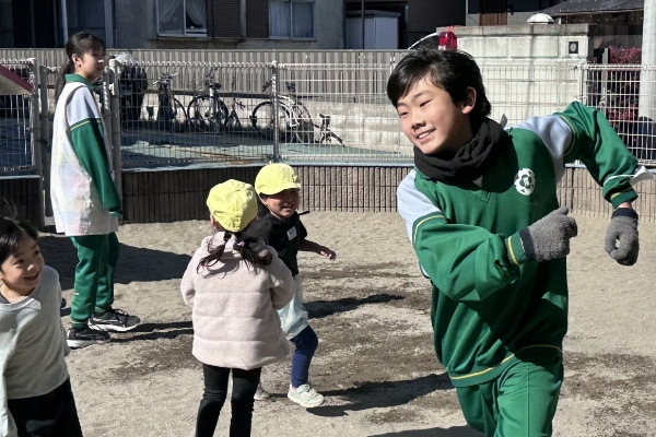 2025/2/17~19 さいたま市立木崎中学校の2年生の生徒5名を受け入れました。一緒に過ごす中で、中学生のお兄さんお姉さんのことが大好きになったこどもたち。園庭ではサッカーや鬼ごっこで沢山遊んでもらいました!