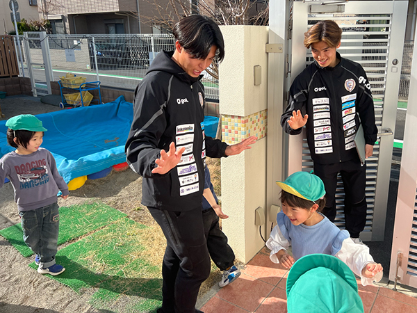 南葛SCの加藤政哉選手、山上新平選手が葛飾高砂たいよう保育園にきてくださいました。昨シーズンのユニフォームもプレゼントしていただき、子どもたち、職員も感激していました。ありがとうございました!
