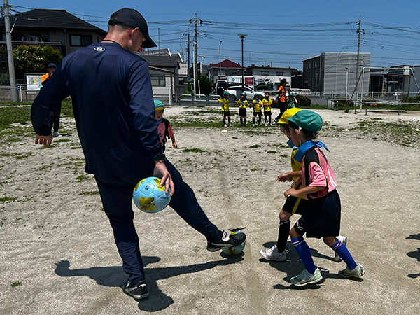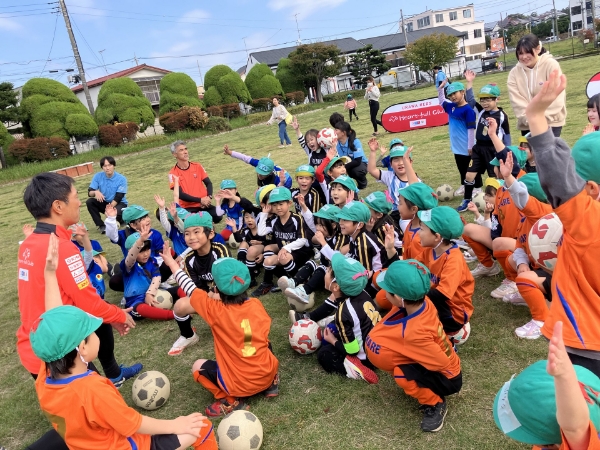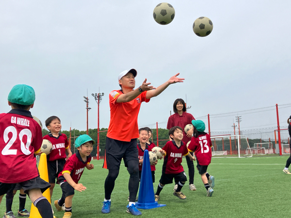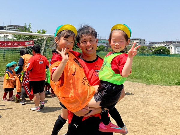 サッカー選手と一緒に試合を行い、子どもたちにとっても特別な時間になりました。