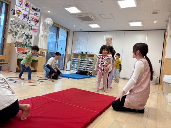 小学1年生から中学3年生まで、合わせて40名が参加してくれました!。保育園ならではの遊びを久しぶりに行い、学年関係なくみんなで大盛り上がりでした。