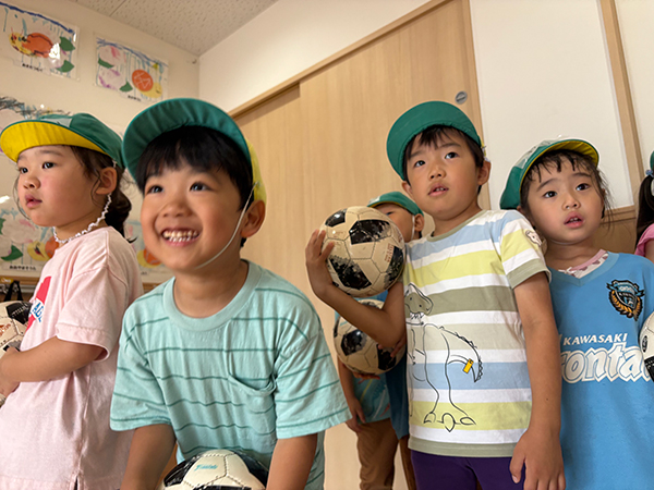 浦和レッズハートフルサッカーを各園にて行いました。身体を動かす楽しさボールに触れる楽しさを感じ楽しみました!