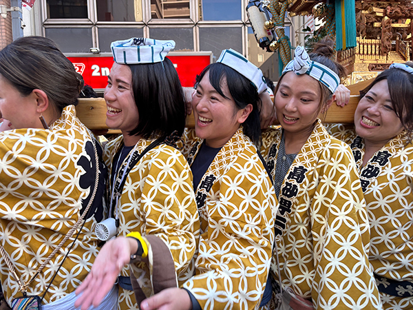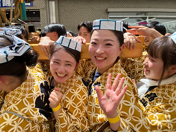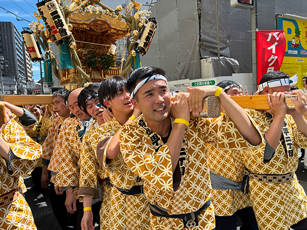 地域の方と一緒に浦和駅周辺の旧中山道を中心に、酷暑も吹き飛ばす活気の中、御神輿を担ぎました。