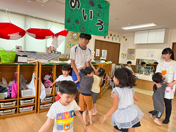 2025/7/8~7/10 東浦和たいよう保育園に三室中学校の2年生5名を受け入れました。子どもたちと身体をたくさん動かし沢山遊んでもらいました!