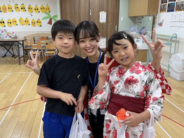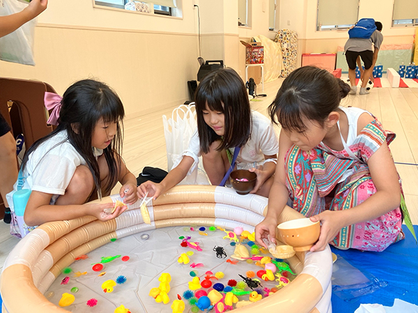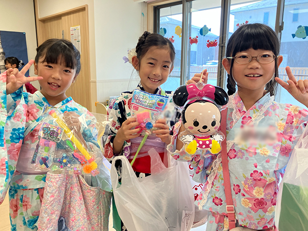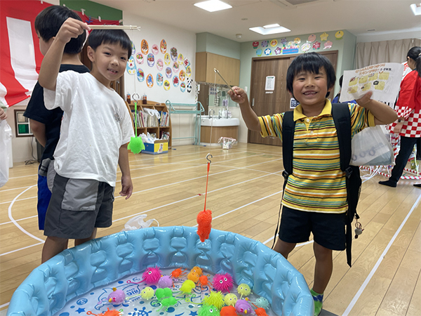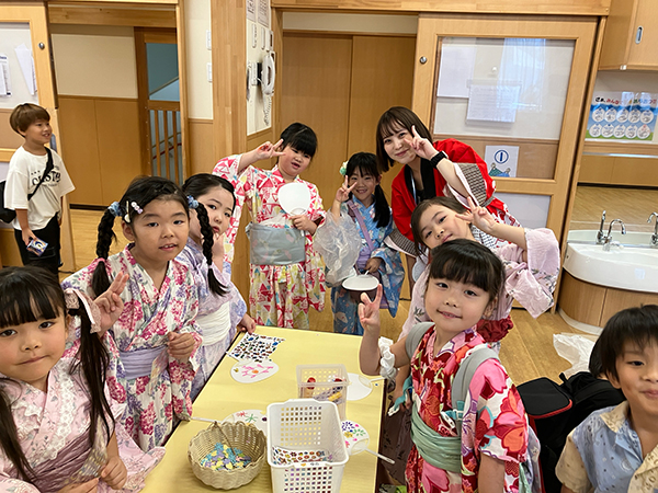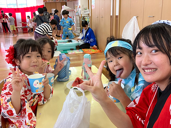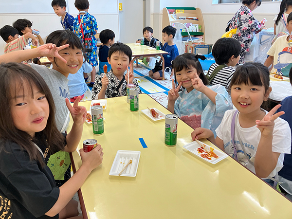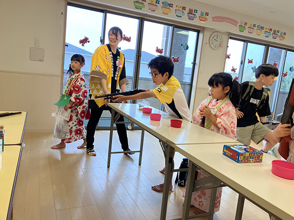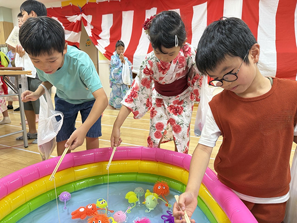 総勢73人の卒園児が集まってくれました。はじめは緊張している子どもたちも、一緒に縁日を回るうちに打ち解けて久しぶりの再会を楽しむことが出来ました。