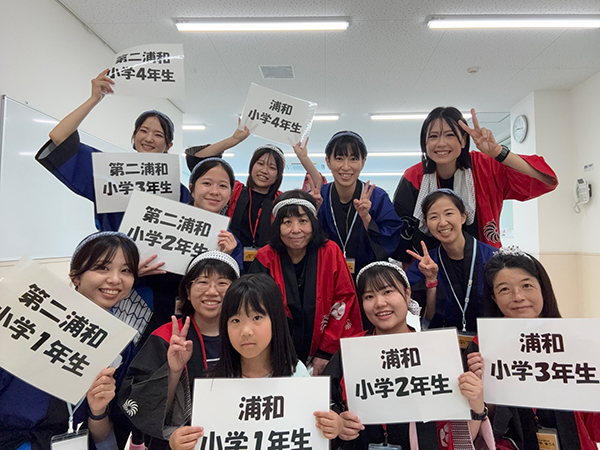 横浜こども専門学校にて学内フェアに参加させていただきました。卒業生も一緒に参加し、自分の保育のやりがいや行事の楽しさなどについてもお話しさせていただきました。