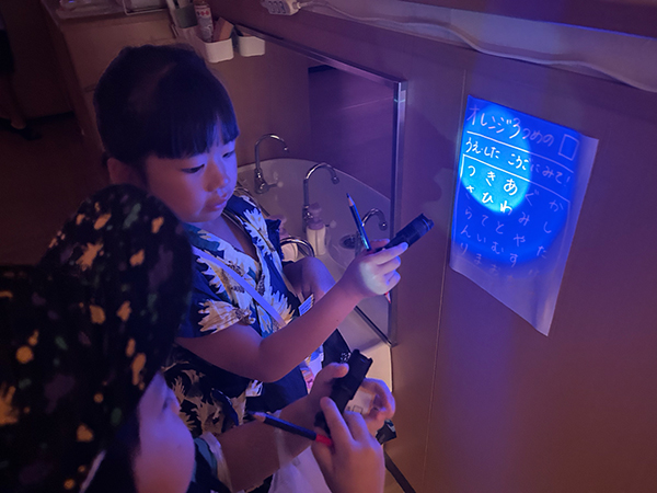 地域の方々との交流を深めるためにヒノキの入浴木に祖父母に向けたメッセージを書き、お風呂に浮かべました。