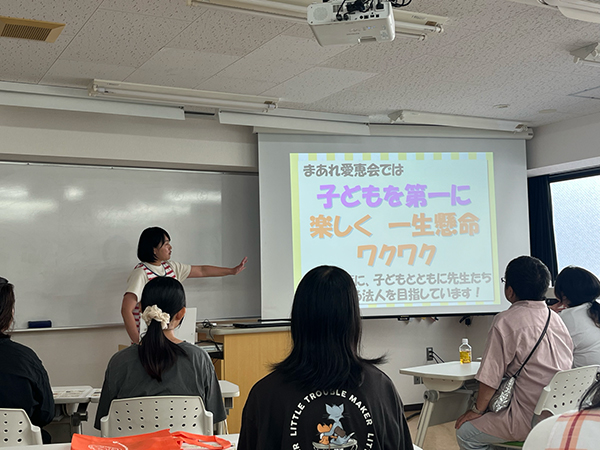 夜間、社会人枠の学生さんを対象に授業の一環としてノッチ主催のプレ就職ガイダンスに参加しました。就職活動や園見学のポイントについてお話をさせていただきました。