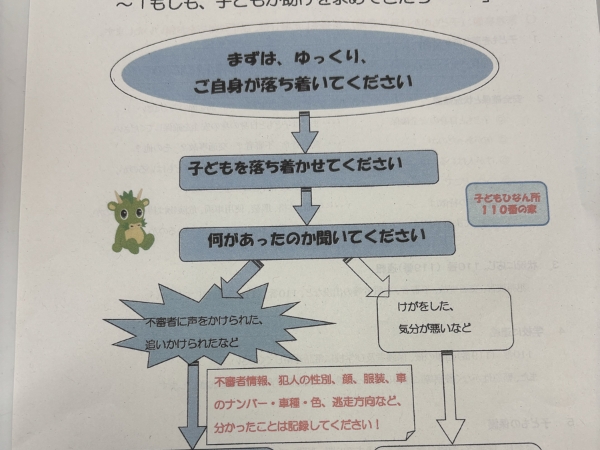 南与野たいよう保育園が依頼をうけ、「子どもひなん所110番の家」の一つとなりました。