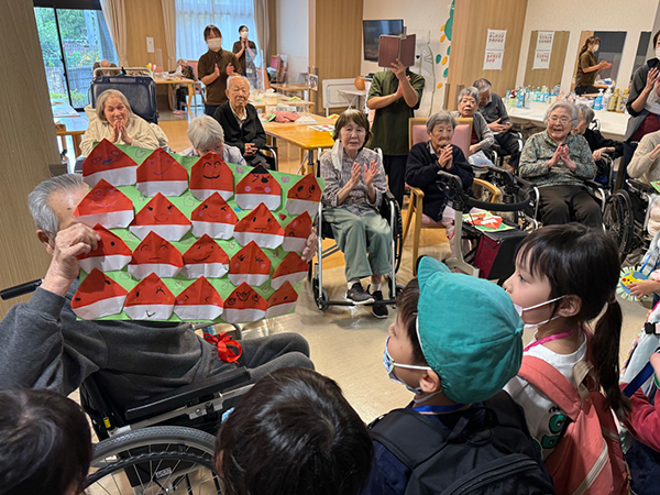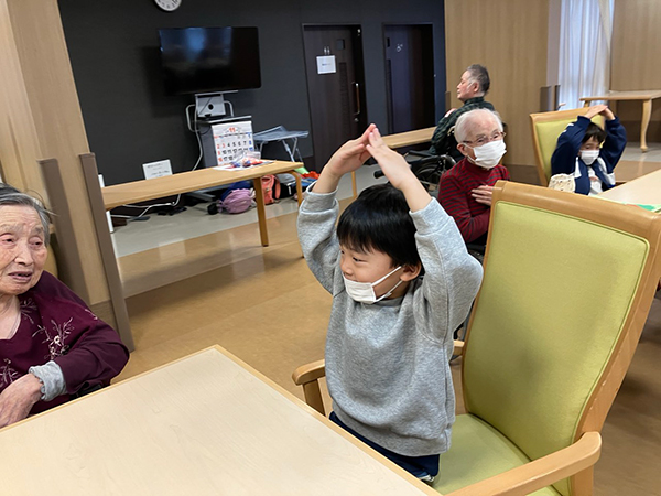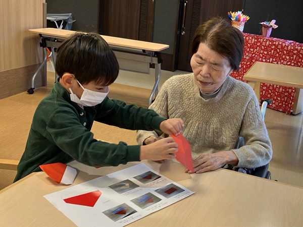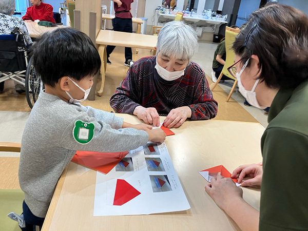 一緒に折り紙や体操、歌を歌ったりして和やかなひと時を過ごしました。
