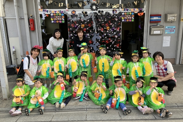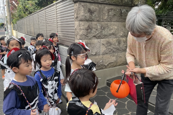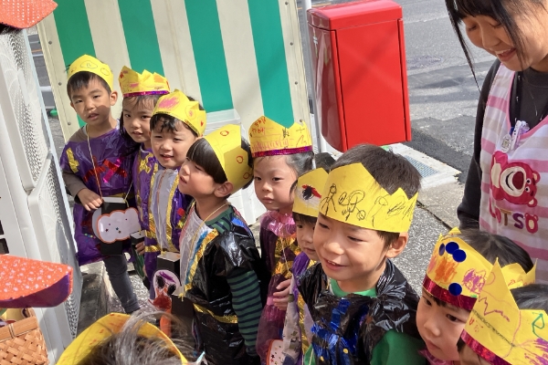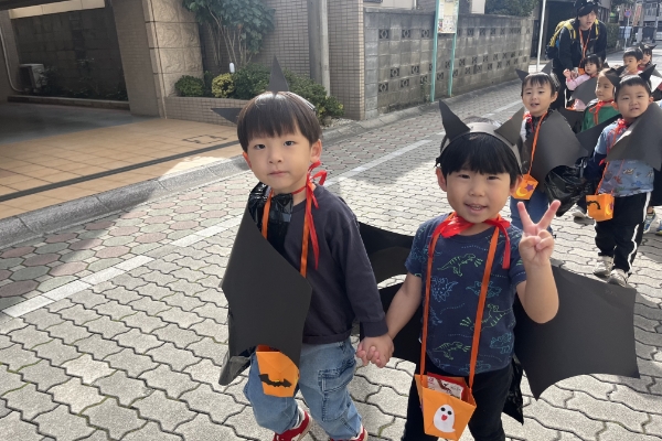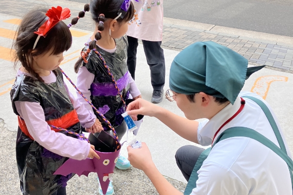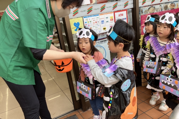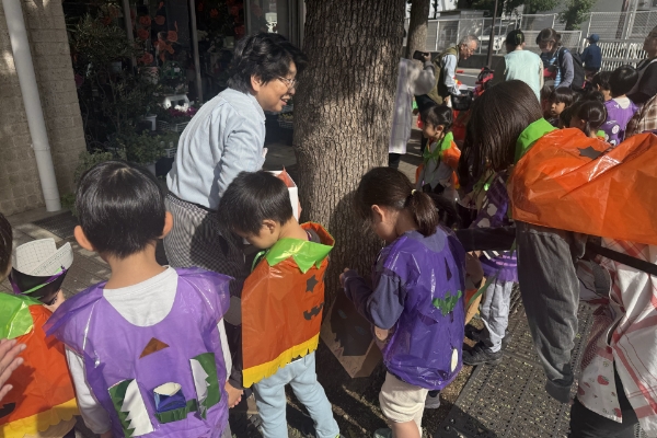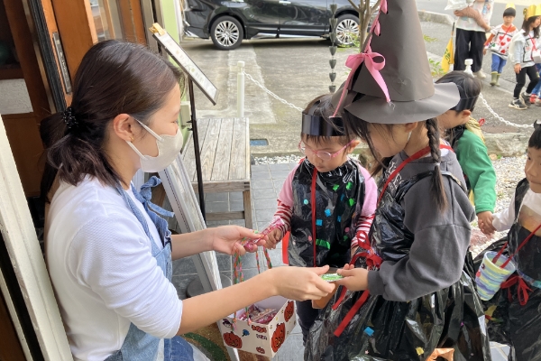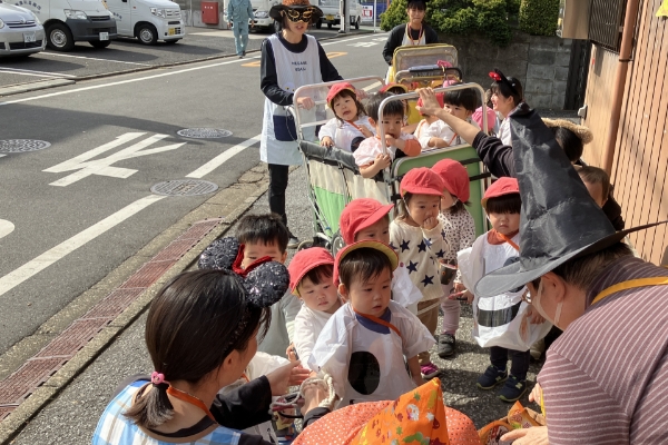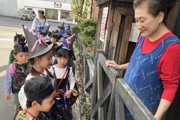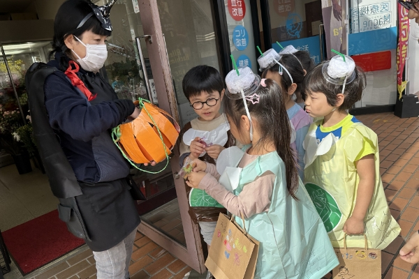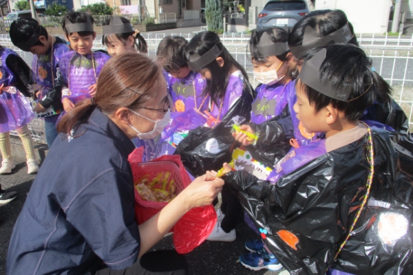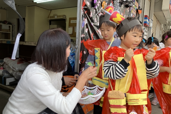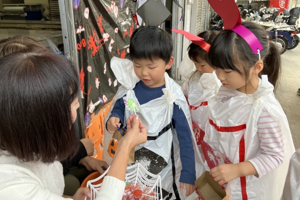 ハロウィンの行事では、子どもたちが製作した衣装を着て地域を歩きました。