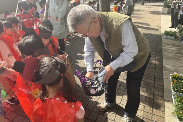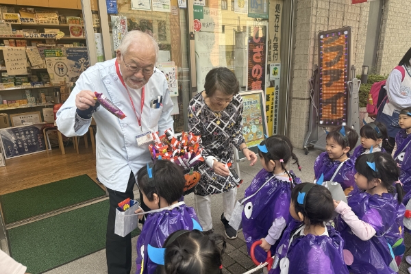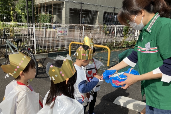 地域の方が子ども達にお菓子を配ってくださり、温かな交流の場となりました。