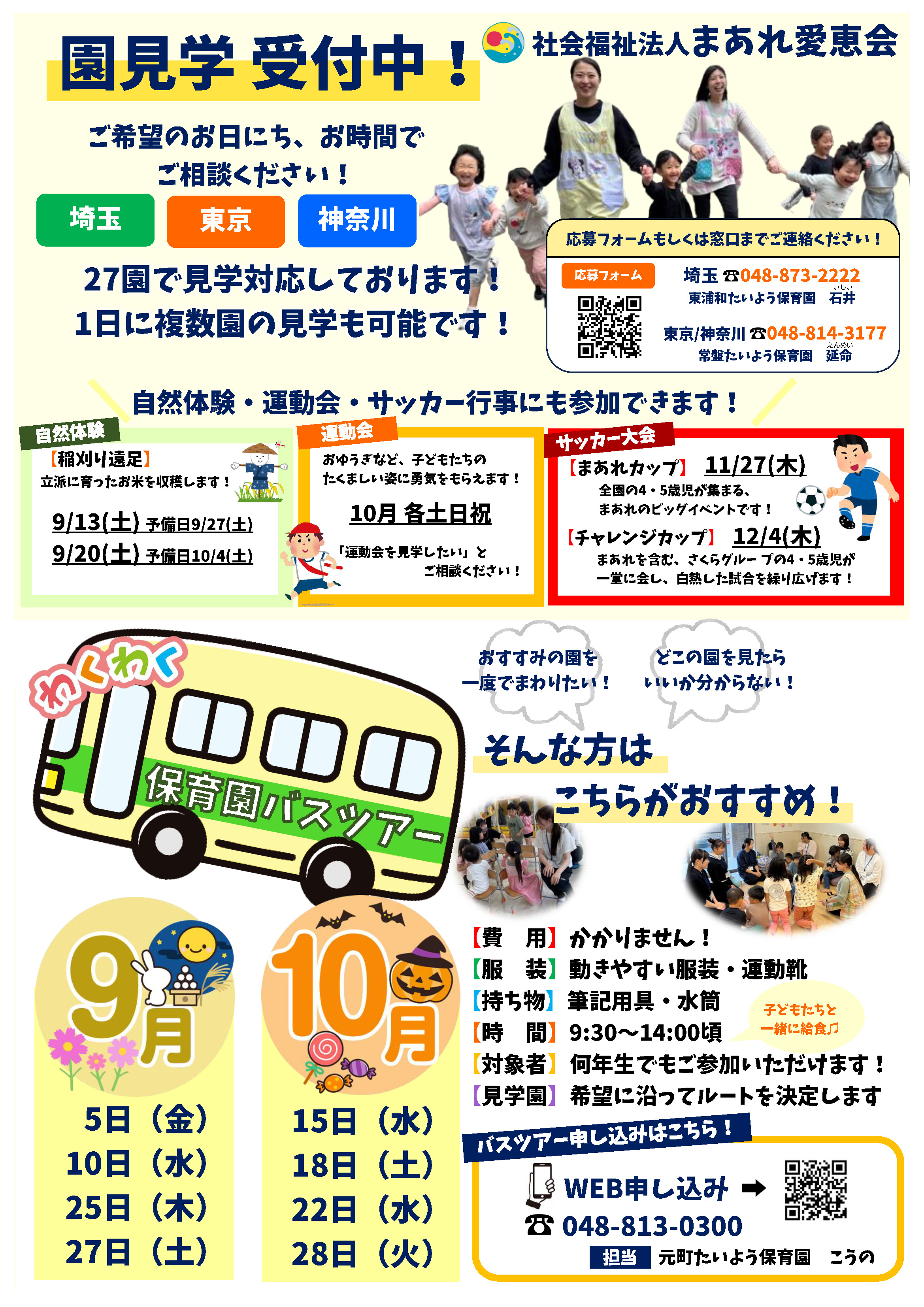 わくわく保育園バスツアーbus tour PDFで見る バスツアー参加申し込みフォーム この度はお申込みを頂きありがとうございます。お手数ですが下記のフォームに必要事項を入力ください。 参加希望日 第1希望ご選択ください 参加希望日 第2希望ご選択ください 参加希望日 第3希望ご選択ください 希望見学園※「園庭のある園、●●市内など、ご自由に入力してください」ご希望に添えない場合もございます お名前 ふりがな 現在通われている学校名 お電話番号 メールアドレス 備考