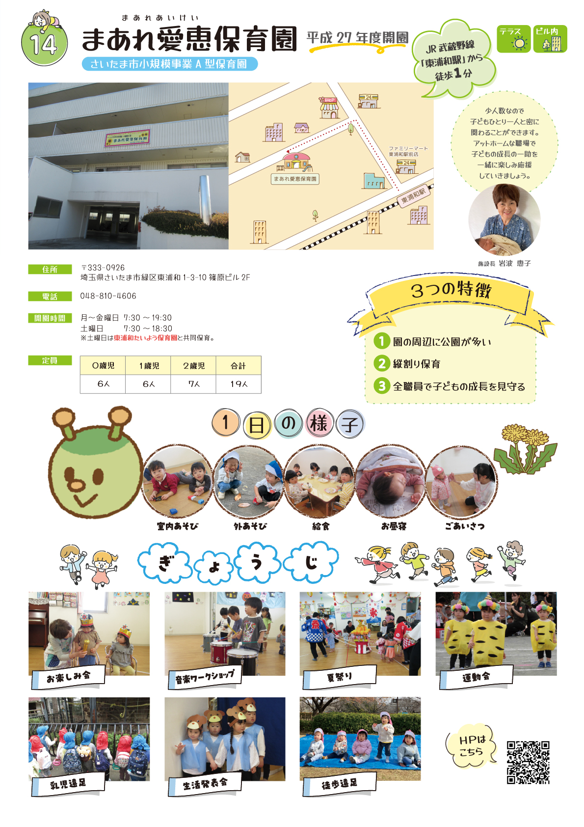 さいたま市では、2015年4月から小規模保育事業所を新たな保育施設の形態として設け、当園は小規模保育事業所として開園いたしました。