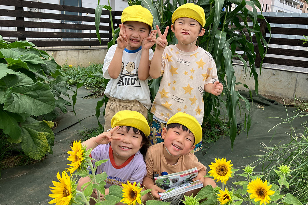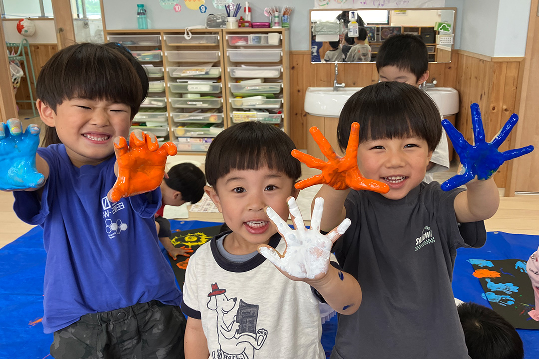 給食は、入園児童の心身ともに健全な発達と健康の保持・増進に必要な栄養素を供するとともに、給食を通して望ましい食習慣を身につけ、体と食物との関係について関心を持つことを目標としています。自園で調理しています。